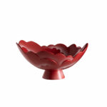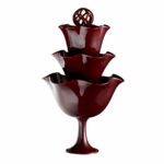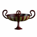 Clay centerpiece, hand thrown, with hand applied reliefs. White airbrushed decoration over red glaze, with glossy finish.