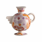 Hand shaped and hand modelled clay vase. Hand painted multicolour decoration with a glossy glaze finish.