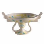 Hand shaped and hand modelled clay centerpiece. Hand painted multicolour decoration with a glossy glaze finish.