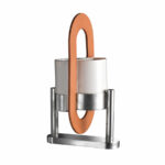 Hand shaped and hand cut clay vase. Finished in waxed terracotta and glossy white glaze. Set into a metal base coated with a silver plating.